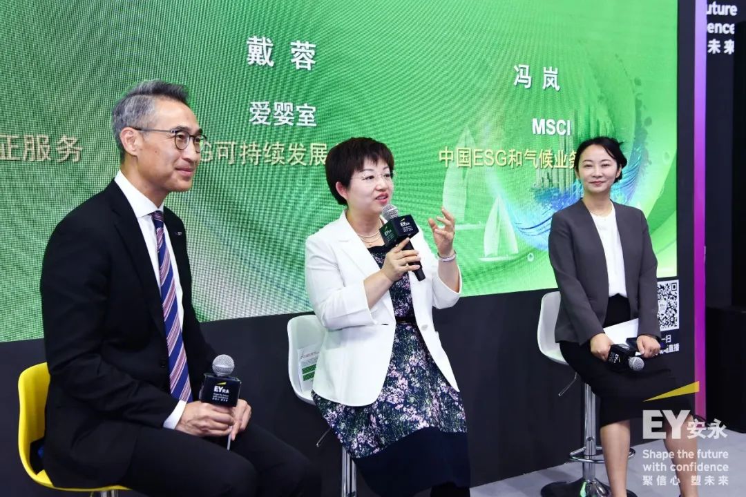在圆桌讨论环节,安永1大中华区可持续发展报告与鉴证服务主管合伙人刘国华、MSCI中国可持续和气候业务负责人冯岚与上海爱婴室商务服务股份有限公司ESG可持续发展负责人戴蓉一起,就企业如何以气候治理提升应对日益提升的气候信息披露要求开展深入交流。企业嘉宾提供了丰富的实践经验,具象化地阐释了将气候变化应对融入企业的日常管理、经营决策与资源配置;作为评级机构代表,冯岚为大家介绍了资本市场对于企业气候信息披露的重点关注和期望,以及如何评估企业的气候风险管理能力。