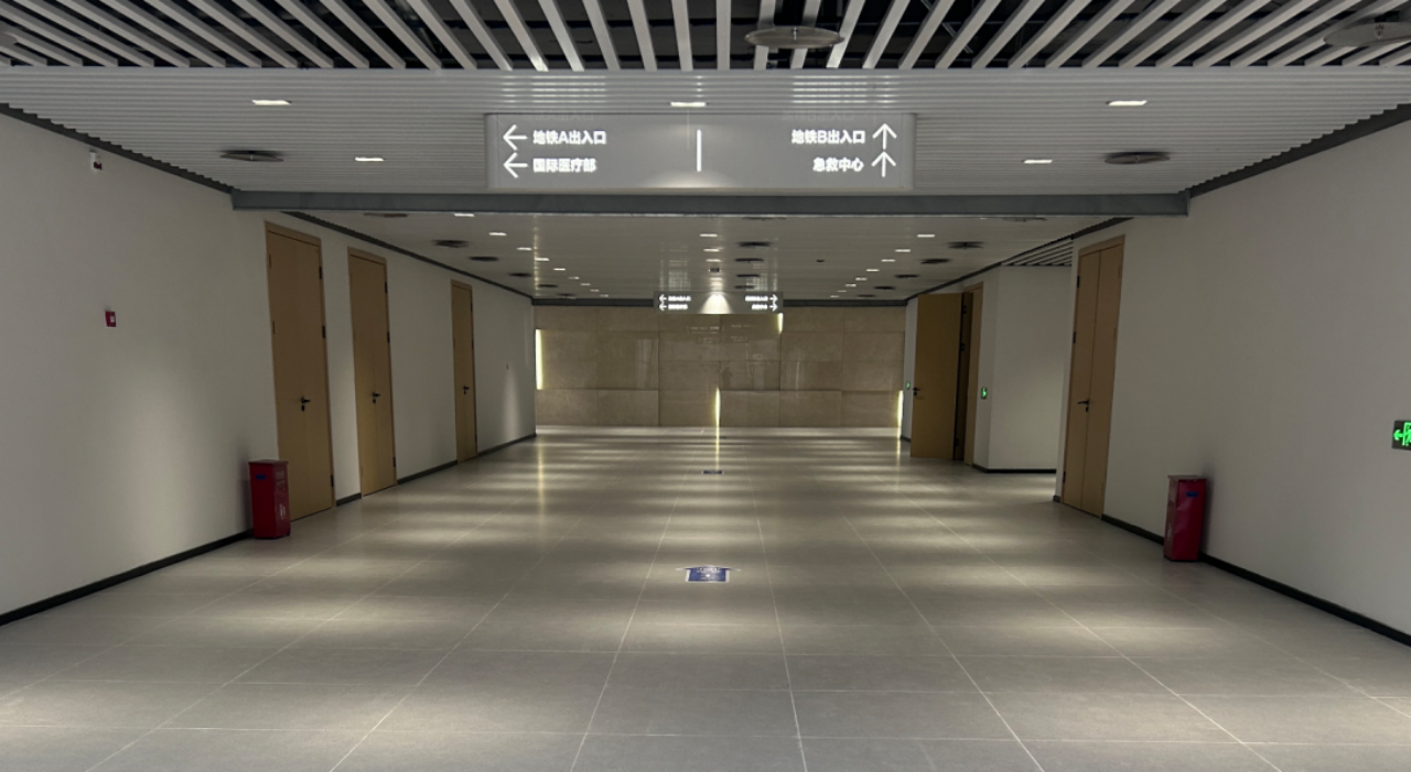 地面空间,院区建筑间还特别设置了“无风雨”连廊慢行系统,即便在下雨天气,市民也能从容地从地铁出口、公交站点直达医院各功能区域,真正实现“风雨无阻,就医畅通”。